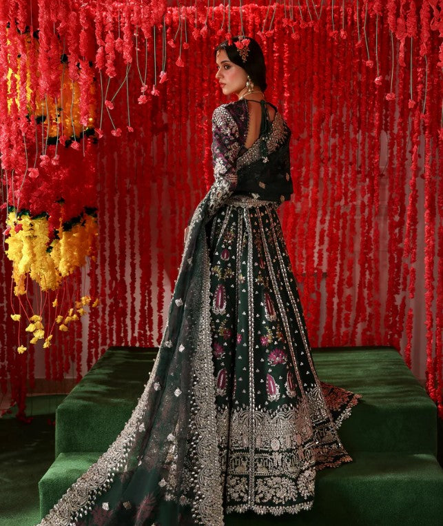 DARK GREEN RAW SILK DIGITAL PRINTED EMBROIDERED BACK BODY (1 PC)