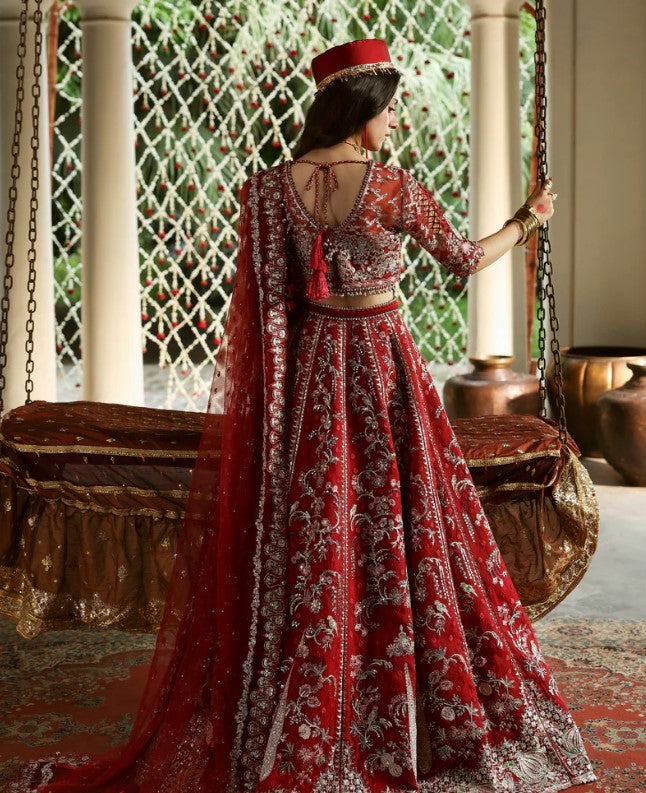 RED SHMOZ SILK EMBROIDERED DUPATTA 4 SIDE BORDER (7.90 Meter)
