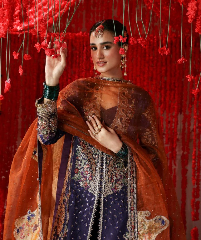 PURPLE RAW SILK EMBROIDERED DUPATTA 4 SIDE BORDER (7.9 Meter)