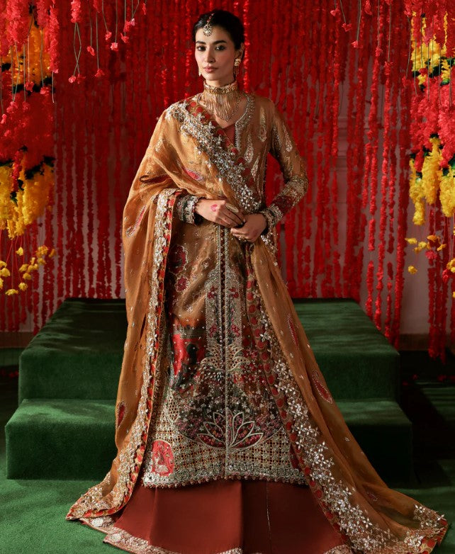 PEACH TISSUE ZARI DIGITAL PRINTED EMBROIDERED FRONT RIGHT PANEL (1 PC)