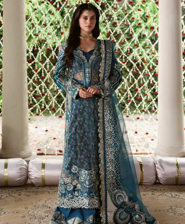 SEA GREEN ORGANZA DIGITAL PRINTED EMBELLISHED FRONT+BACK (2 PCS)