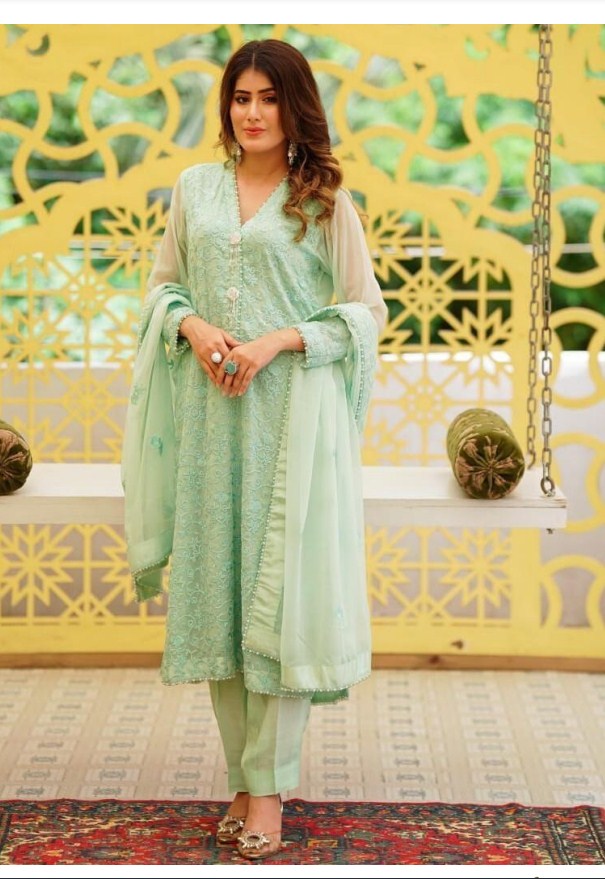 1. Chiffon Embroidered Shirt Front and Back 3 Yard