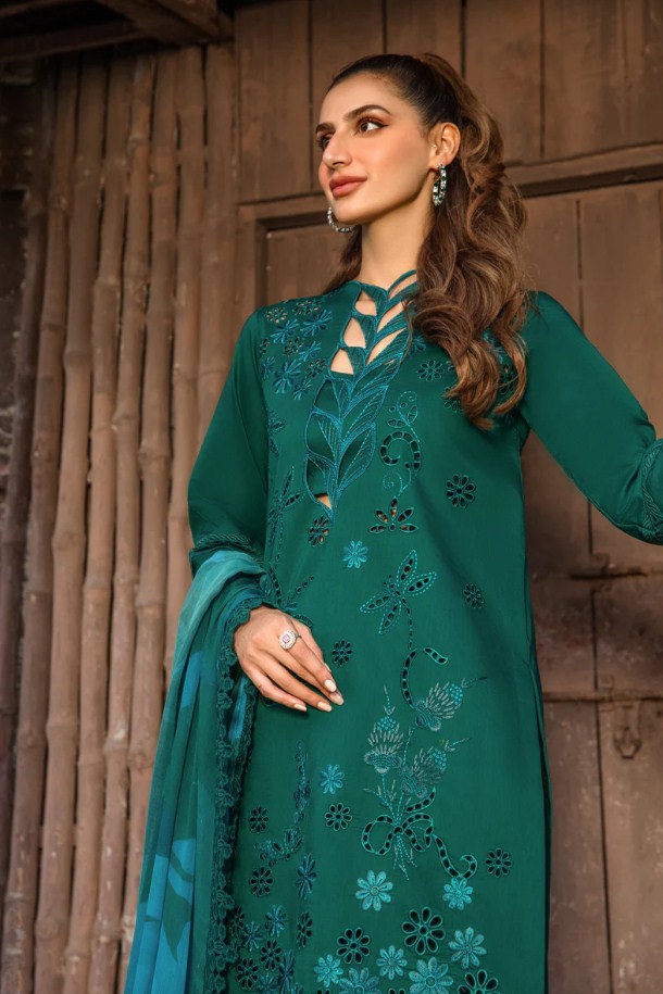 Chikankari embroidered shirt front on dyed lawn 1.25 yard