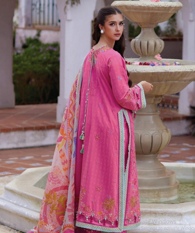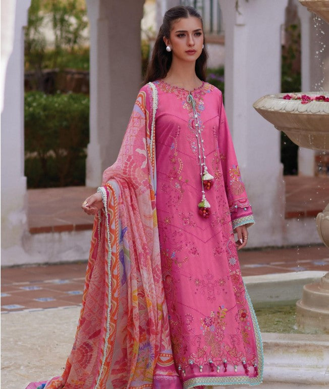 Embroidered Lawn Shirt with Tropical And Floral Motifs