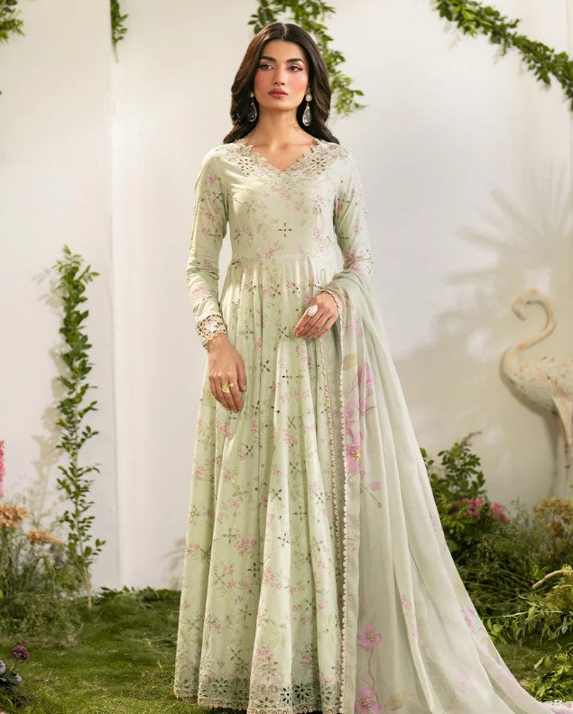 Frock Front, Bodice & Sleeves: Borer Embroidered Printed Lawn