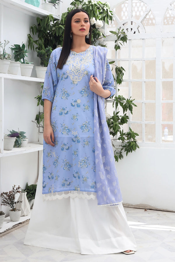 Shirt: Digitally Printed Premium Embroidered Lawn
