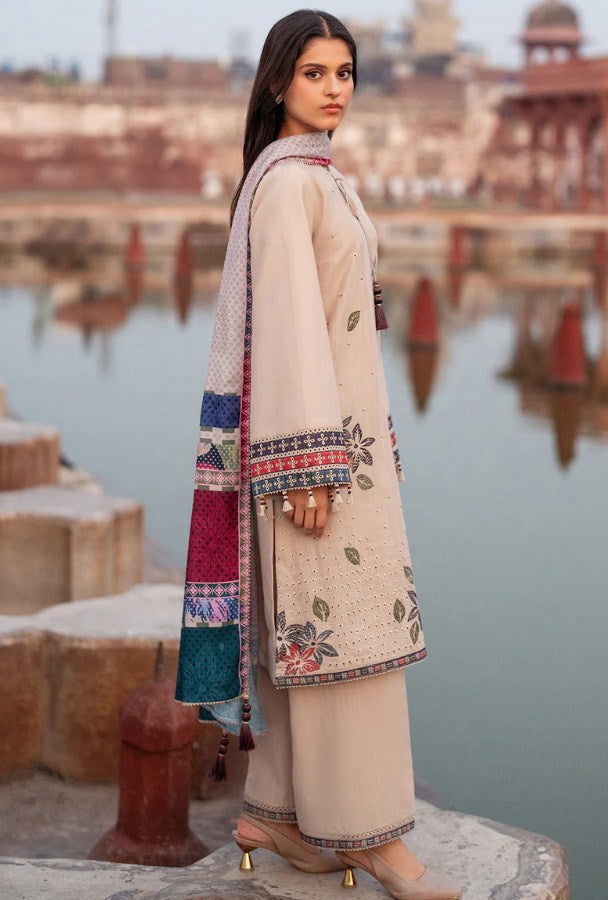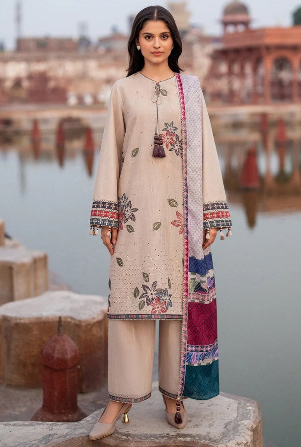 Embroidered Slub Khaddar Front, Back & Bottom Border