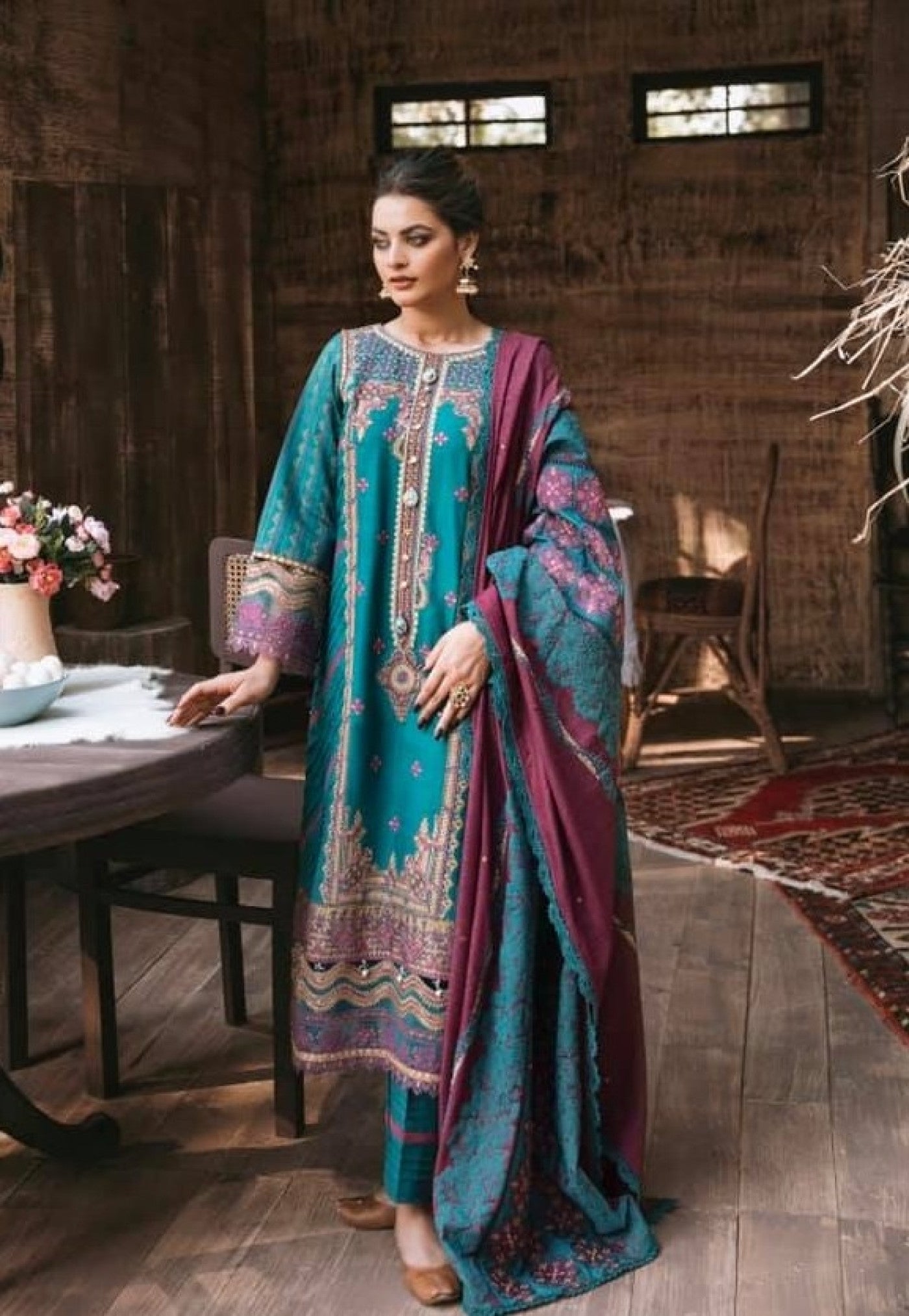 Shawl Embroidered Shaw L Center Panel block Printed Shawl Side Pan