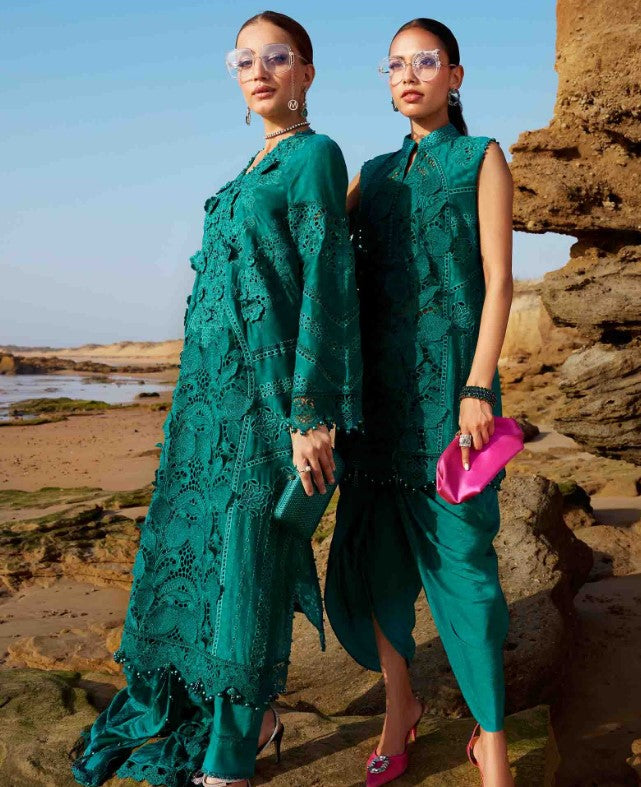 Embroidered Jacquard Lawn Left Panel With 3D Flowers & Pearls