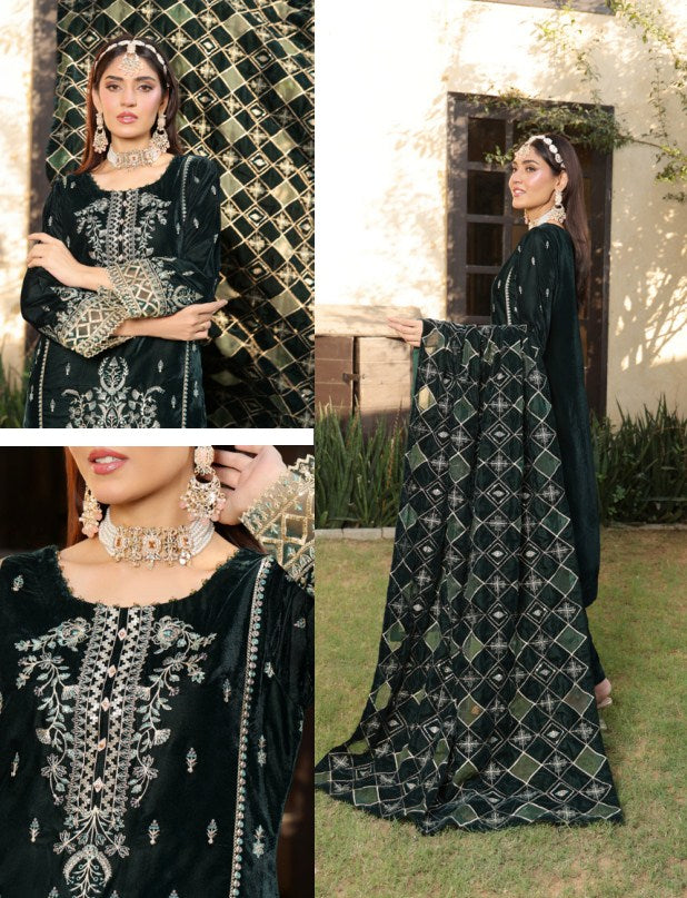 Unstitched Embroidered Velvet Shirt & Trouser