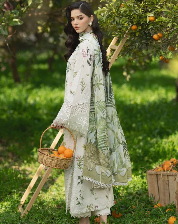 Chikan-kari on Digital Printed Sleeves (Lawn)