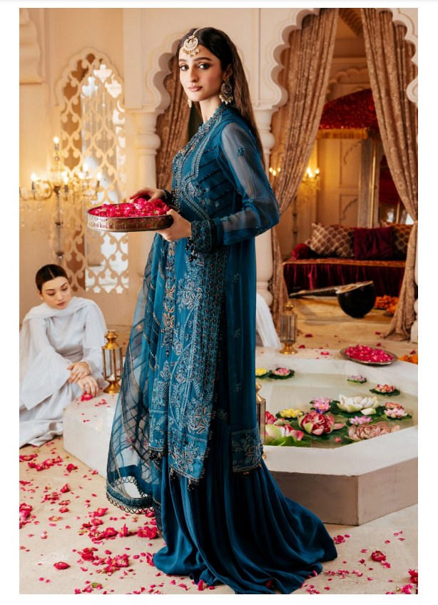EMBROIDERED CHIFFON FRONT WITH H.M WORK 1 YDS