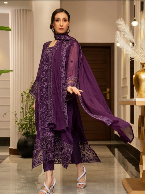 Embroidered Chiffon Front